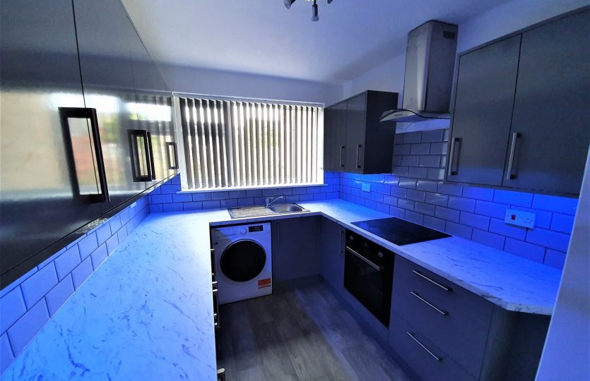 Includes brand new gloss grey kitchen with led lighting, new carpets, decor, blinds, furniture.