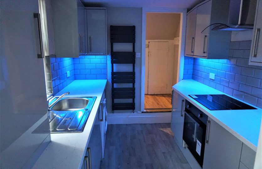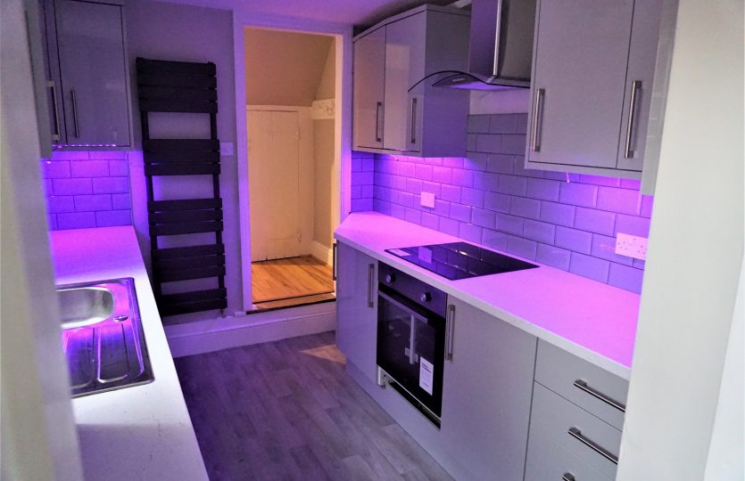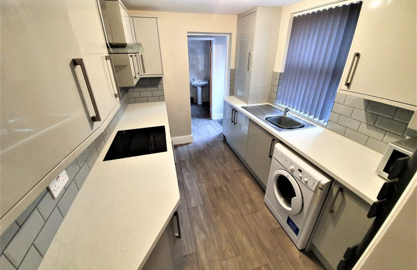 Featuring Brand New High Gloss Grey kitchen fully fitted with top of the range induction hob!